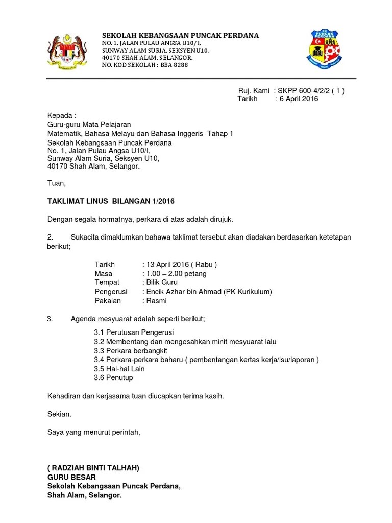 Contoh Notis Pemberitahuan Mesyuarat : Surat Notis Mesyuarat Agung